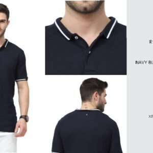 POLO TEE WITH TIPPING REGULAR FIT UNISEX TEE NAVY BLUE WITH WHITE TIPPING