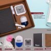 5 In 1 Gray Set: Mobile Fan, Keychain with Car Charger and Cable, Air Freshener (100 gm), Glow Clock and A5 PU Notebook in Kraft Gift Box – Q98